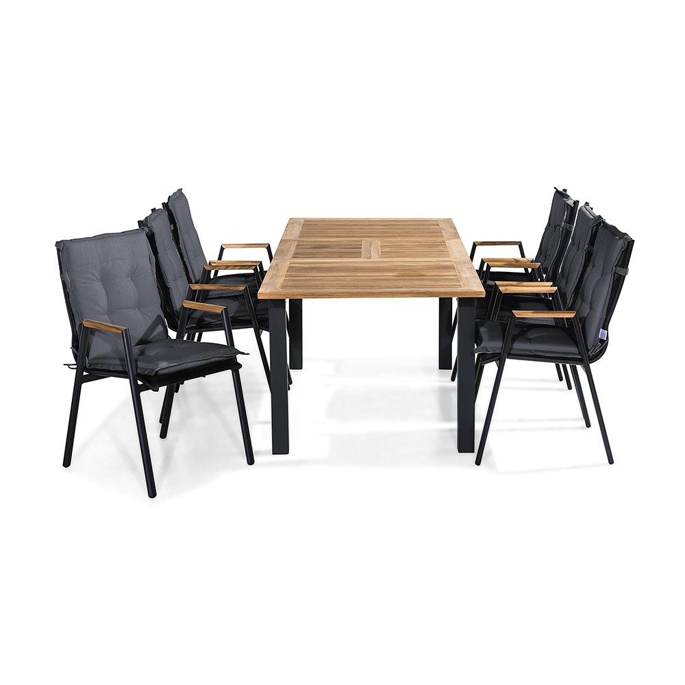 Matgrupp Comfort Garden Las Vegas 152 210 med 6 Karmstolar Svart